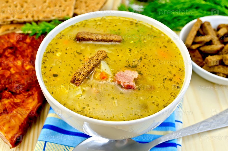 Гороховый суп с грудинкой и гренками