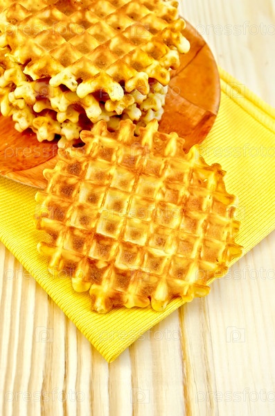 Круглые золотистые вафли на доске