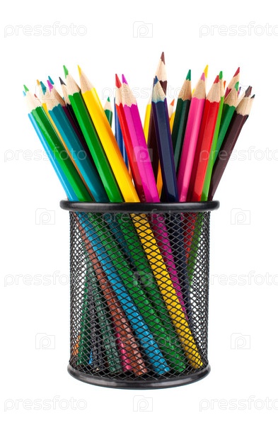 Цветные карандаши в черной подставке