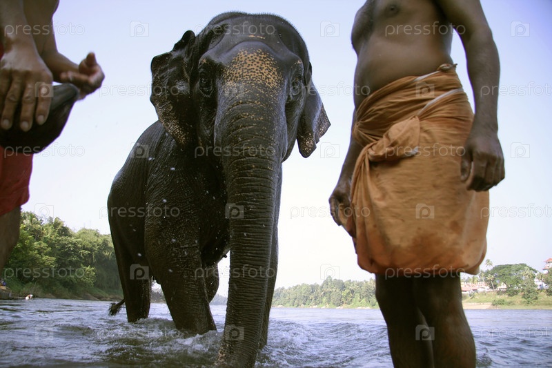 Слон выходит после купания, Южная Индия