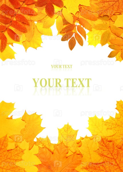 Рамка из ярких осенних листьев на белом фоне