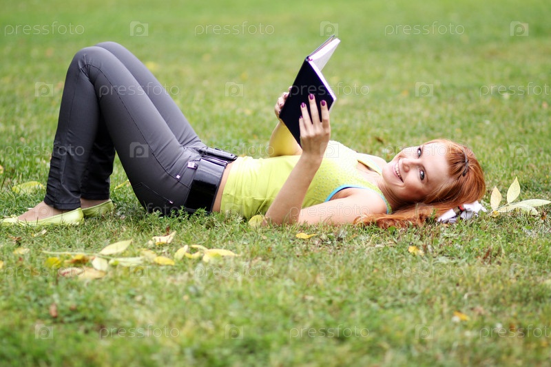 Женщина с книгой на траве