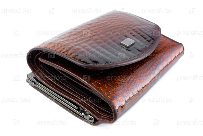 Коричневый женский кошелек на белом фоне
