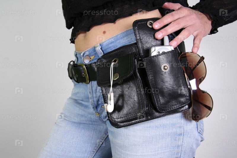 Женщина позирует с сумкой-ремнем для денег