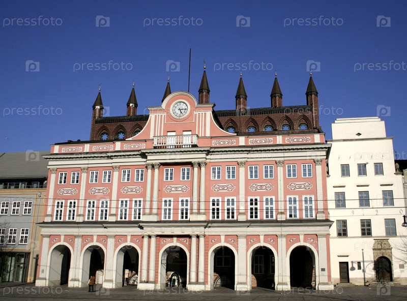 Розовое здание мэрии в Ростоке, Германия