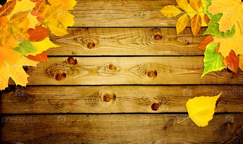 Деревянный фон с осенними листьями