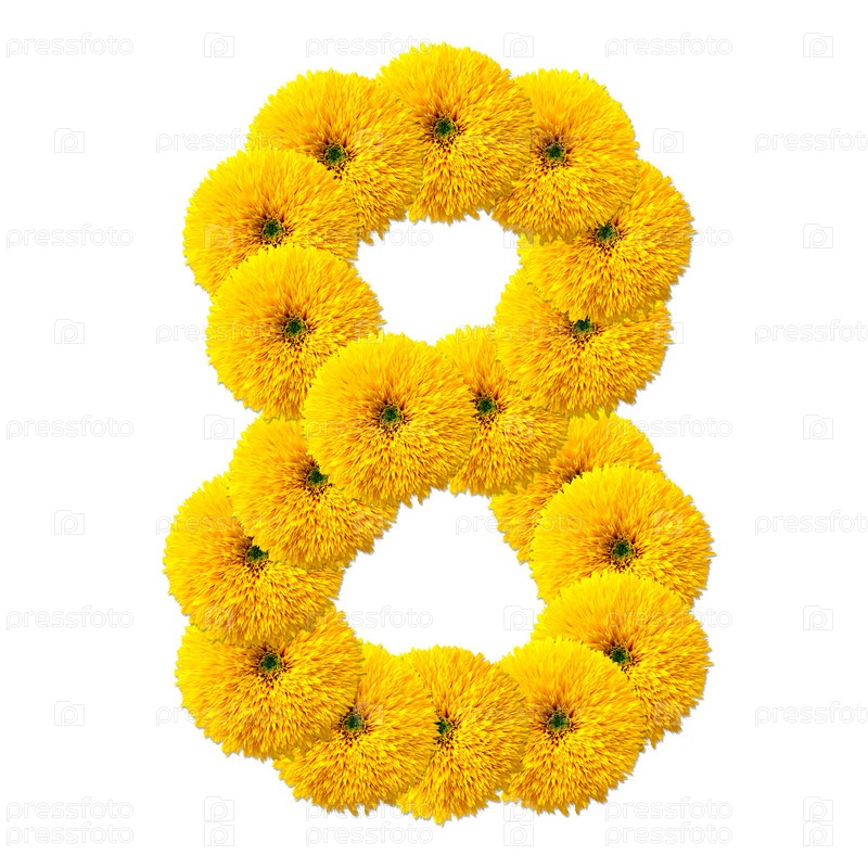 Цифра из цветов, изолированная на белом фоне