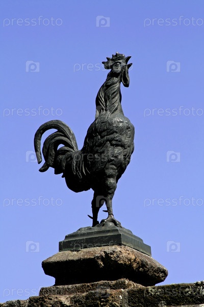 Скульптура петуха на голубом небе