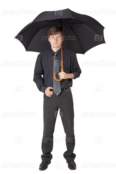 Красивый мужчина с черным зонтом