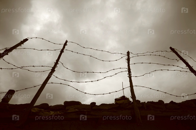 Ограждение из колючей проволоки и стена