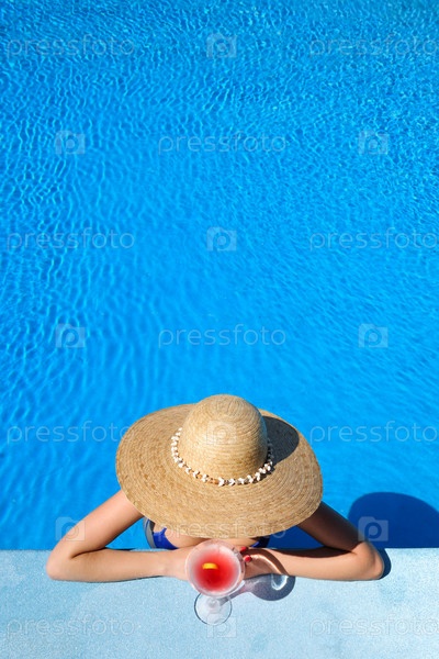 Женщина с коктейлем космополитен у бассейна