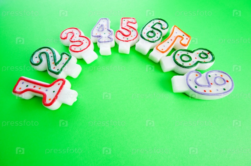 Свечи с цифрами для торта на день рождения (на зеленом фоне)