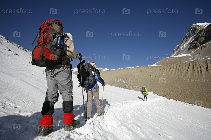 Туристы поднимаются в горы