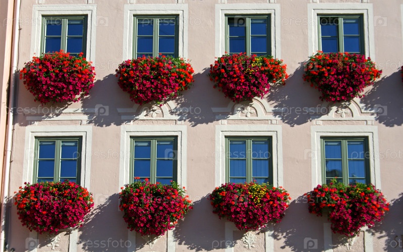 Цветы на фасаде здания