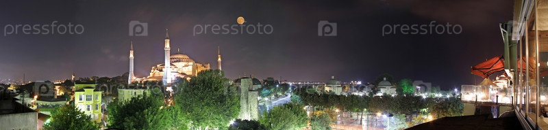 Собор Святой Софии, ночная панорама, Султанахмет, Стамбул, Турция