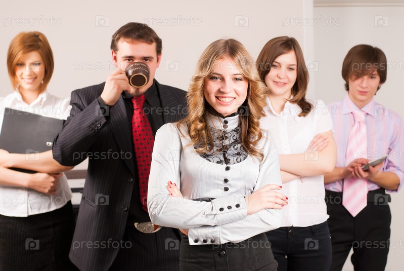 Привлекательная бизнес-леди и ее команда