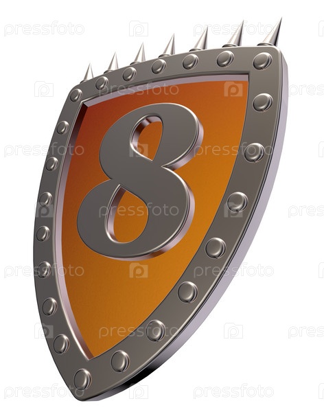 Щит с цифрой 8 на белом фоне. 3d Иллюстрация