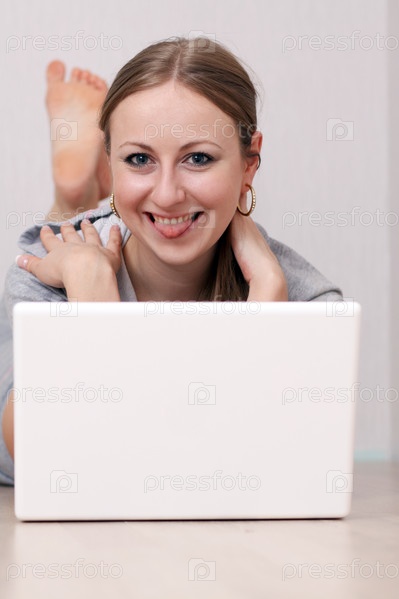 Портрет молодой женщины с ноутбуком