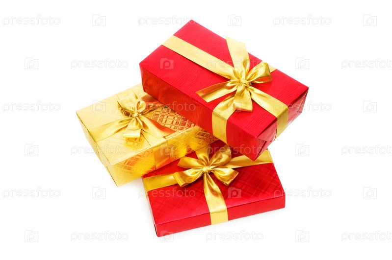 Подарочные коробки на белом фоне