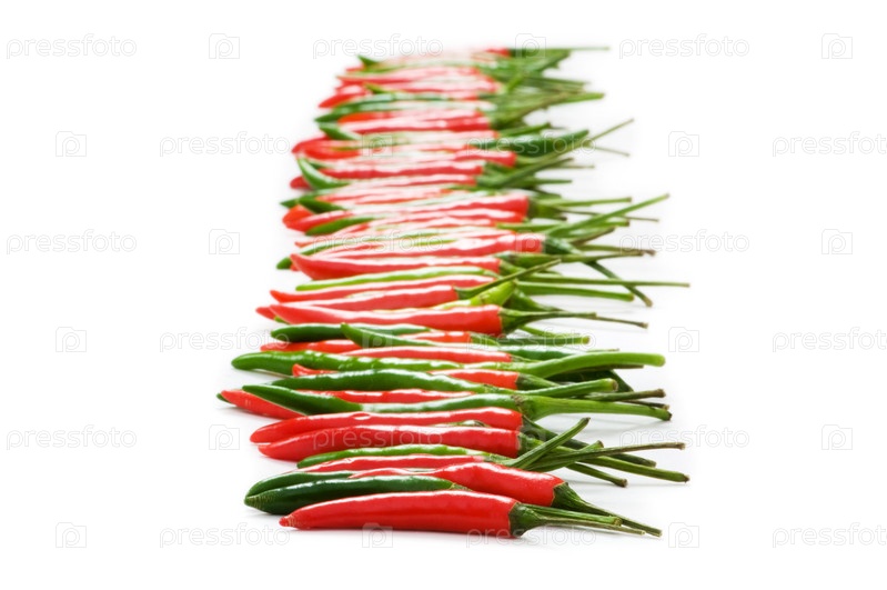 Ряд перцев на белом фоне