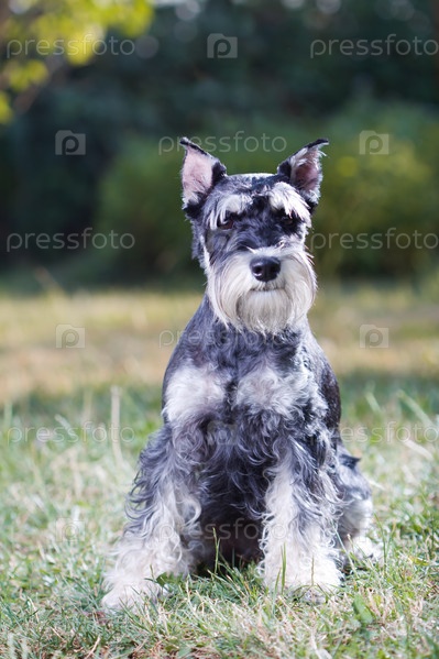 Цвергшнауцер, сидящий на траве