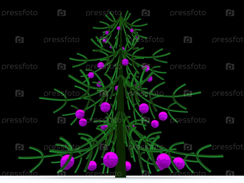 3D-изображение елки с игрушками на черном фоне