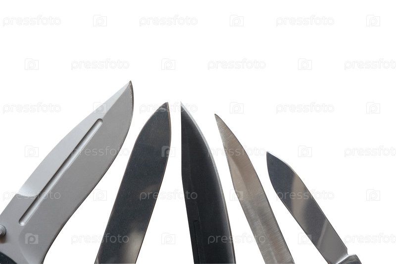 Лезвия ножей на белом фоне