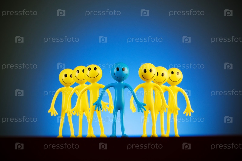 Концепция лицерства: человечки-смайлы на синем градиентном фоне