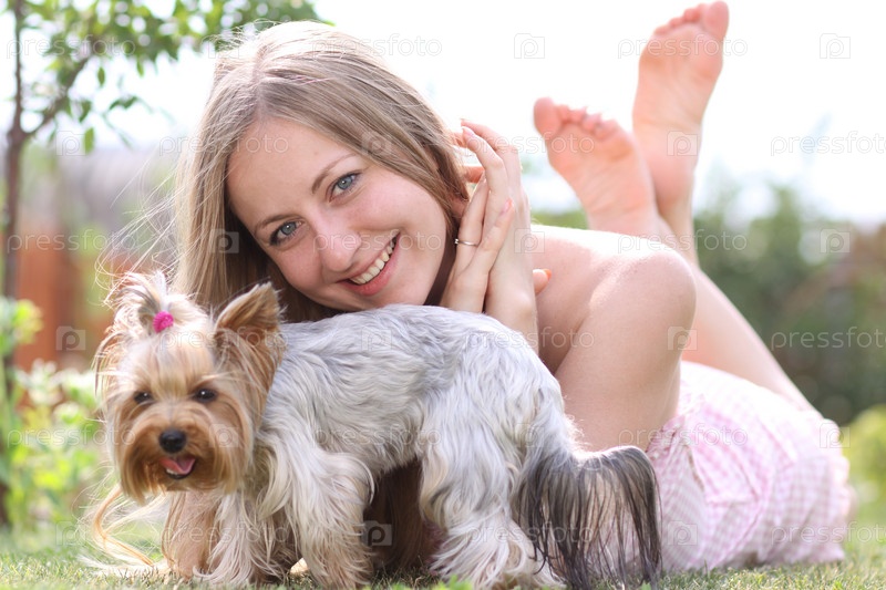 Портрет молодой женщины с собачкой