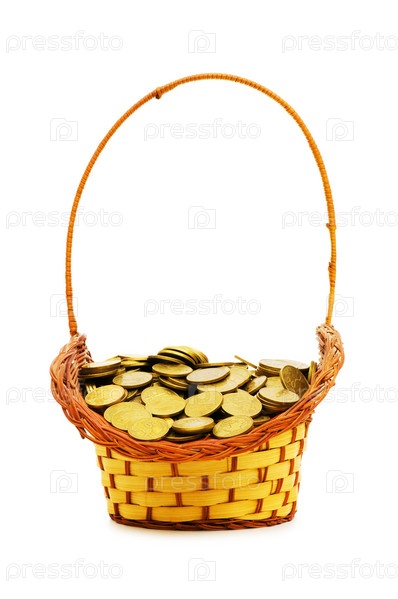 Плетеная корзина с деньгами