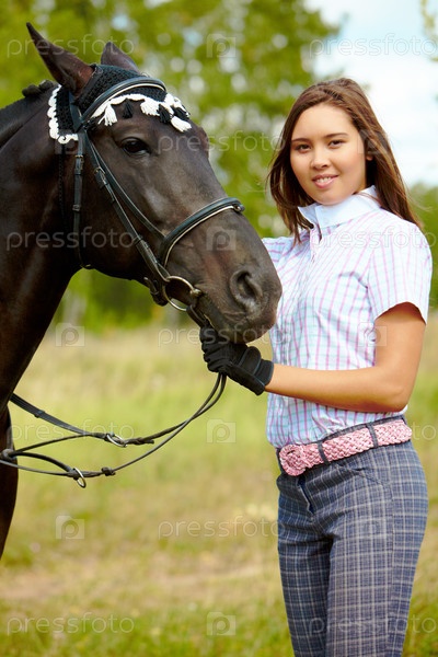 Портрет красивой девушки с лошадью