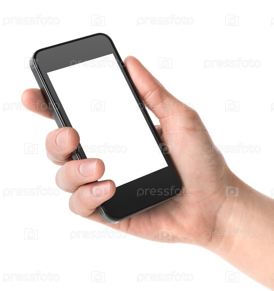 Смартфон в руке, изолировано