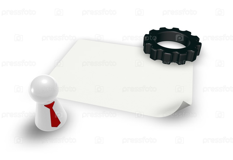 Детали, фигура с галстуком и чистым листом бумаги - 3d иллюстрация