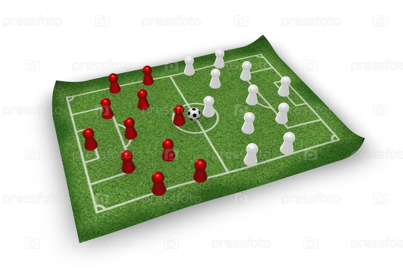 Площадка и футбольная команда - 3d иллюстрация