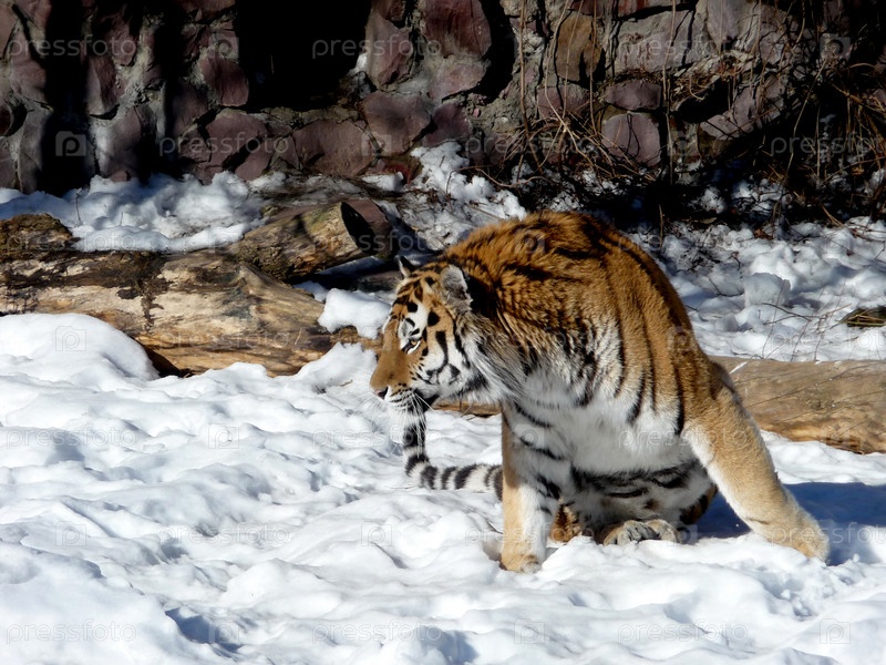 Тигр сидит на снегу