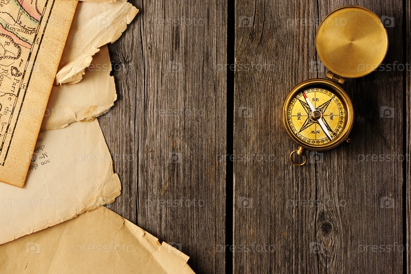 Антикварный компас на старой карте