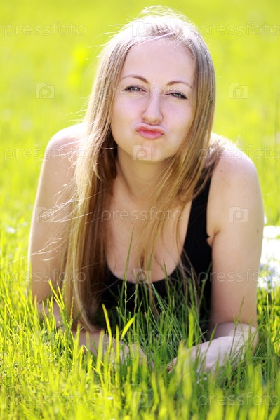 Женщина на зеленой траве