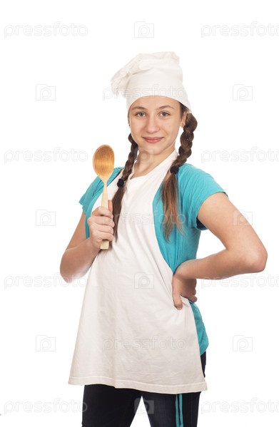 Девушка-повар на белом фоне