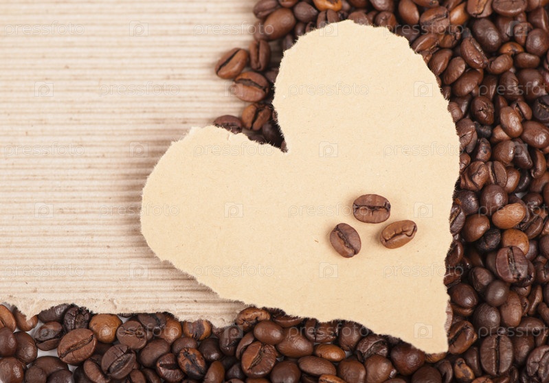Кофейные зерна и бумажное сердце