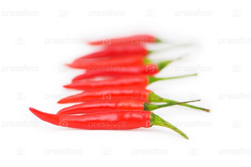 Ряд перцев на белом фоне