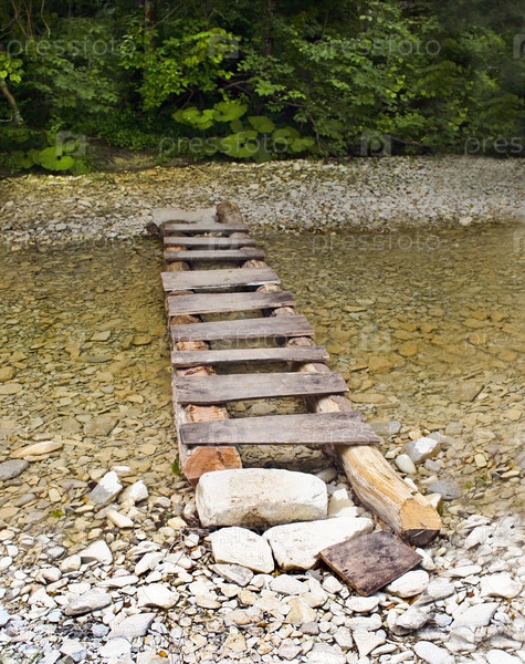 Мост-лестница через мелкую горную речку в Краснодарском крае