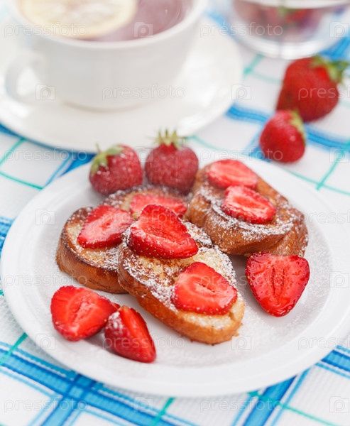 Французские тосты с сахарной пудрой и клубникой