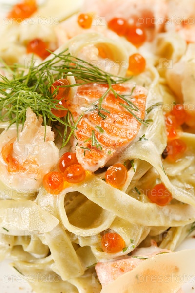 Макароны с лососем и икрой