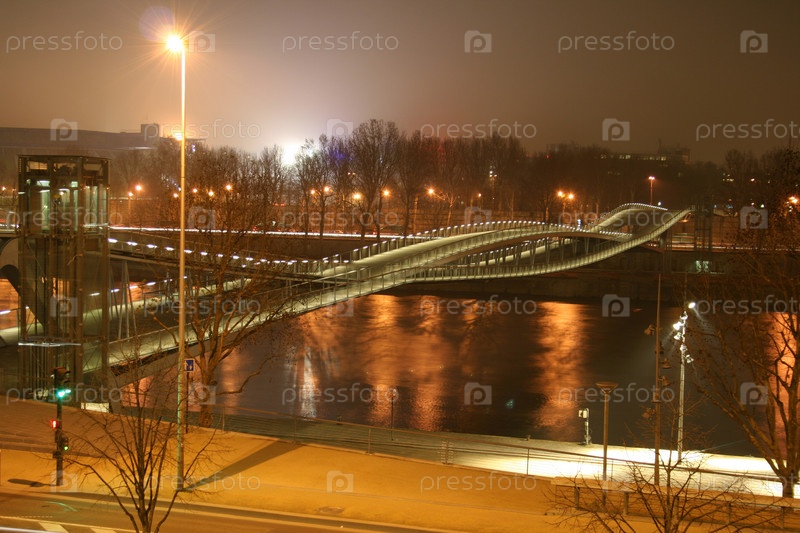Ночной пешеходный мост Симона де Бовуар, Париж, Франция