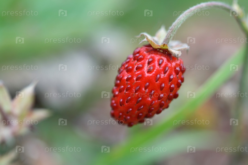 Спелая ягода лесной клубники крупным планом