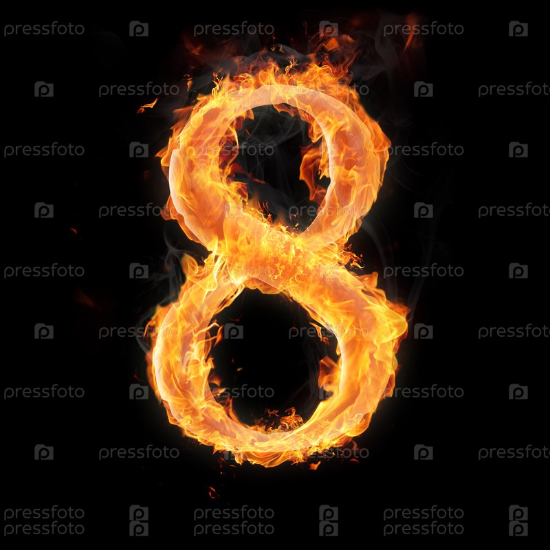 Горящие цифры на черном фоне. 8