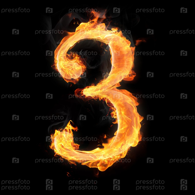 Горящие цифры на черном фоне. 3