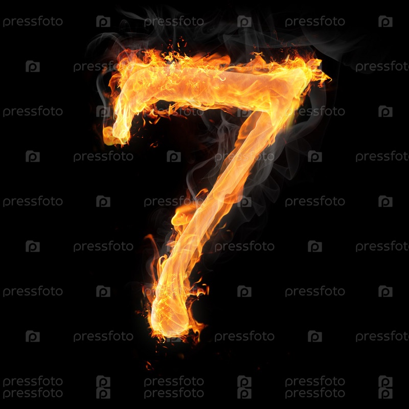 Горящие цифры на черном фоне. 7