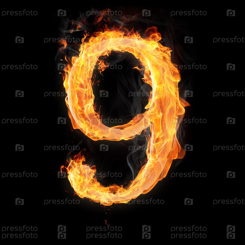 Горящие цифры на черном фоне. 9