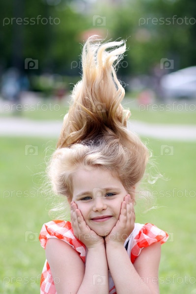 Маленькая девочка с торчащими вверх волосами
